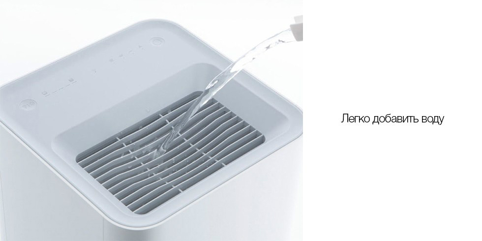 Вы можете легко наполнить резервуар с водой, просто залив её через решетку, система автоматически приостановит процесс испарения воды. Уровень воды покажет степень наполненности бака.
