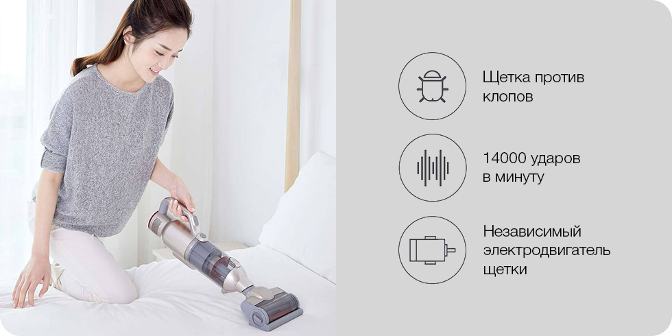 Особая электрическая щетка против клопов имеет собственный электродвигатель, который бьет по поверхности со скоростью 14000 ударов в минуту. От такого воздействия ни один клоп не сможет спрятаться или зацепиться за ткань, а пылесос быстро засосет его внутрь.