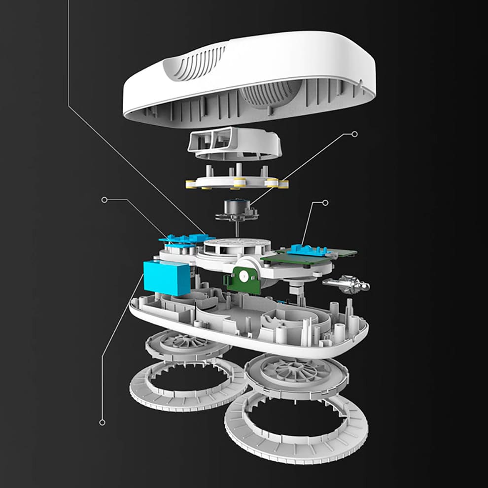 В процессе уборки робот самостоятельно вычисляет оптимальный маршрут и следует ему. Уровень загрязнения поверхностей автоматически вычисляется, робот самостоятельно регулирует мощность. Для управления роботом в ручном режиме предусмотрен беспроводной пульт ДУ.