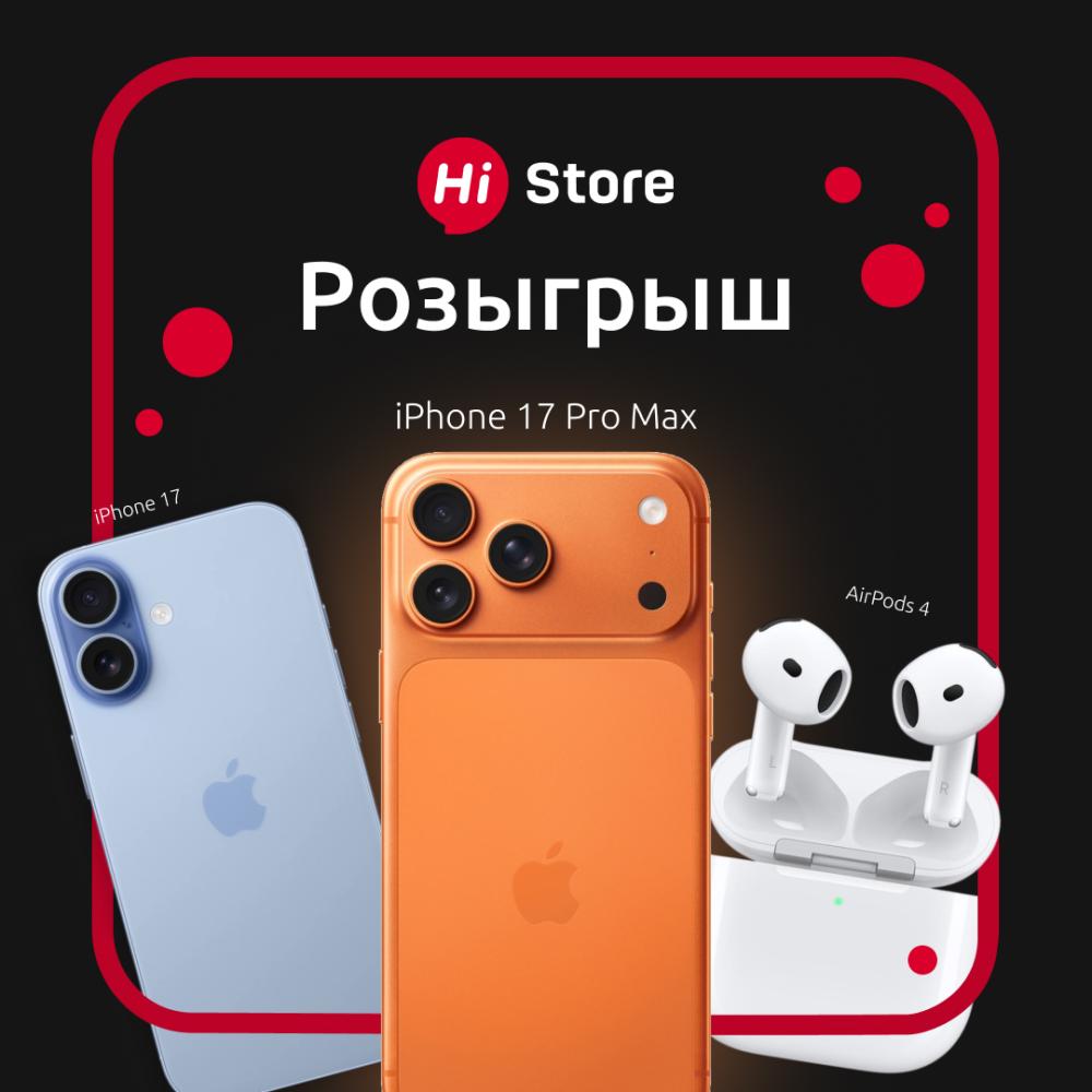 Для участия в розыгрыше главного приза — iPhone 17 Pro Max, достаточно просто совершите любую покупку в Hi Store и вы автоматически в числе участников. Чем больше товаров в чеке — тем выше шансы!